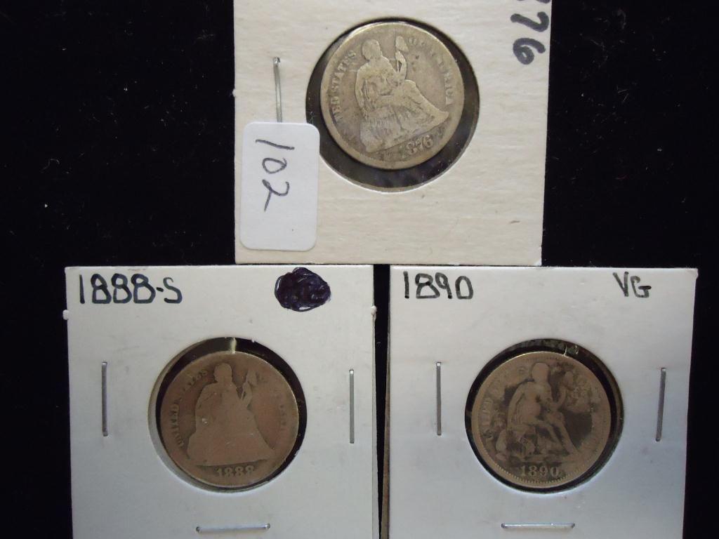 1876,88-S & 90 SEATED LIBERTY DIMES