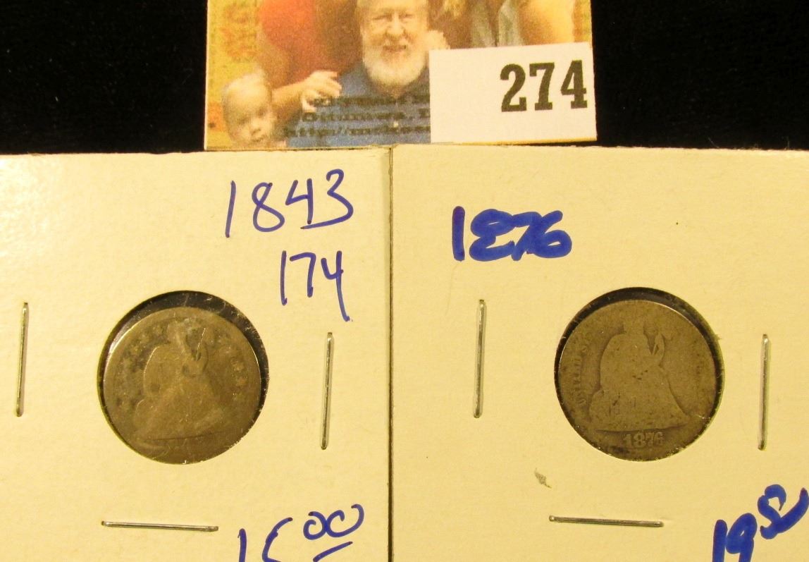 1876 AND 1843 SEATED LIBERTY DIMES