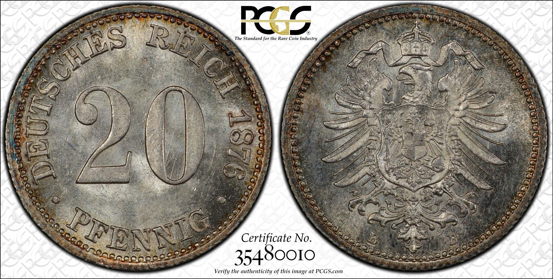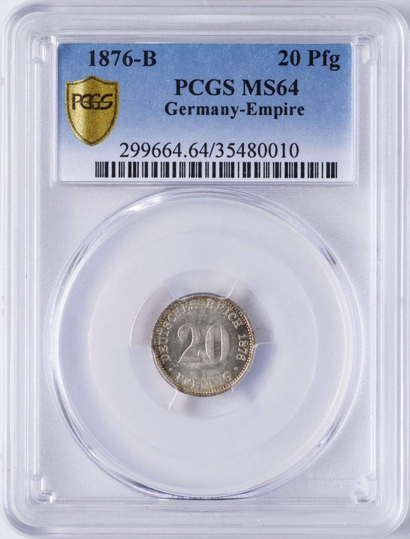 One 1876-B Germany-Empire 20 Pfennig Coin PCGS MS64.