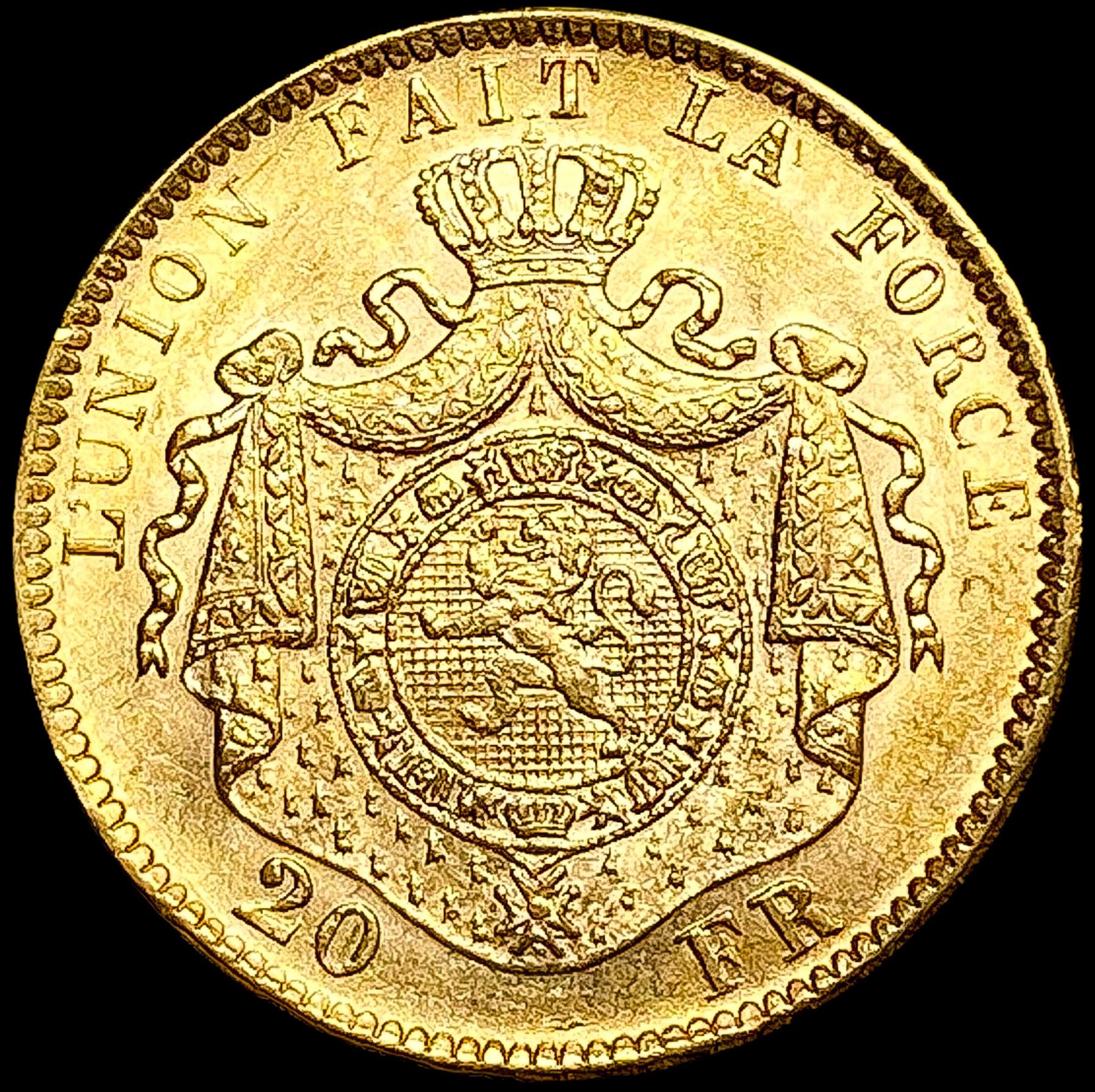 1876 Belgium .1867oz Gold 20 Francs UNCIRCULATED