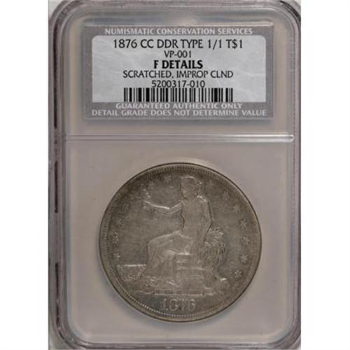 <B>1876-CC $1 Doubled Die Reverse,Type 1/1--Improperly Cleaned, Scratched--NCS .Fine Details.</B></I> VP-001. NGC Census: (0/18). PCGS Population (0/16). (#97042)<BR><BR><b>Shipping:</b> Coins & Currency (<a target="_blank" href="http://www.heritageauctions.com/common/shipping.php">view shipping information</a>)