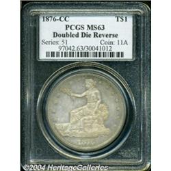 <table><tbody><tr><td><table> <TR><TD width="100%"><TABLE cellSpacing=1 cellPadding=3 width="100%" border=0><TBODY><TR><TD width="100%" bgColor=#79735c><FONT face=arial color=#ffffff size=3><B>Description</B> </FONT></TD></TR><TR><TD width="100%" bgColor=#ffffff><FONT face=arial size=2><B>1876-CC $1 Doubled Die Reverse MS63 PCGS.</B></I> FS-0014. Breen-5805, "Very Rare." Type One Obverse and Reverse, Tall CC mintmark. The olive branch has a secondary image south, with a remarkably wide spread between the two hubbed impressions. Quite possibly the finest known example of this relatively recent discovery (just under 20 years), as yet not included as a <I>Guide Book</B></I> variety. Both sides are layered in milky lilac-gray patina with reddish-golden accents more liberally seen on the mildly prooflike obverse. Population: 1 in 63, 0 finer (10/03). </FONT></TD></TR></TBODY></TABLE></TD></TR></TBODY></TABLE><BR><A name=PricesRealized></A><TABLE cellSpacing=0 cellPadding=0 width="100%" bgColor=#000000 border=0><TBODY><TR><TD width="100%"><TABLE cellSpacing=1 cellPadding=3 width="100%" border=0><TBODY><TR><TD width="100%" bgColor=#79735c><A name=PR><FONT face=arial color=#ffffff size=3><B>Previous Prices from Heritage Auctions</B> </FONT></A></TD></TR><TR><TD bgColor=#f6f6ed>No Prior Data Recorded </TD></TR><TR><TD bgColor=#ffffff><FONT face=arial size=1 ?>PLEASE NOTE: All prices realized reflect the final hammer price PLUS the buyer's premium in auctions that charge a buyer's premium. Each item has a notation at the top of the listing indicating whether that lot included a buyer's premium. Example: A item that sells with a final hammer price of $100 and a 20% buyer's premium will display with a price realized of $120. All information listed is intended to be as accurate as possible, but errors are possible. Please use this guide carefully and inform us of any inaccuracies. </FONT></TD></TR></TBODY></TABLE></TD></TR></TBODY></TABLE><BR><TABLE cellSpacing=0 cellPadding=0 width="100%" bgColor=#000000 border=0><TBODY><TR><TD width="100%"><TABLE cellSpacing=1 cellPadding=3 width="100%" border=0><TBODY><TR><TD width="100%" bgColor=#79735c colSpan=6><FONT face=arial color=#ffffff size=3><B>Price Guide*</B> </FONT></TD></TR><TR bgColor=#f6f6ed><TD align=middle><B>Grade</B> </TD><TD align=middle><B>Coin World<BR>(Trends)</B> </TD><TD align=middle><B>Numismedia<BR>Retail</B> </TD><TD align=middle><B>Numismedia<BR>Wholesale</B> </TD><TD align=middle><B>Coin<BR>Universe</B> </TD><TD align=middle><B>Heritage<BR>Value Index</B> </TD></TR><TR bgColor=#ffffff><TD align=middle>62</TD><TD align=right>---</TD><TD align=right>---</TD><TD align=right>---</TD><TD align=right>---</TD><TD align=right>---</TD></TR><TR style="FONT-WEIGHT: bold" bgColor=#cccfdd><TD align=middle>63</TD><TD align=right>---</TD><TD align=right>---</TD><TD align=right>---</TD><TD align=right>---</TD><TD align=right>---</TD></TR><TR bgColor=#ffffff><TD align=middle>64</TD><TD align=right>---</TD><TD align=right>---</TD><TD align=right>---</TD><TD align=right>---</TD><TD align=right>---</TD></TR><TR bgColor=#ffffff><TD colSpan=6><FONT size=1>*All information listed is intended to be as accurate as possible, but errors are possible. No item may be returned or refused based on this information which is provided as a service to our customers. You should contact each pricing source directly to determine the accuracy of this information. </FONT></TD></TR></TBODY></TABLE></TD></TR></TBODY></TABLE><BR><TABLE cellSpacing=0 cellPadding=0 width="100%" bgColor=#000000 border=0><TBODY><TR><TD width="100%"><TABLE cellSpacing=1 cellPadding=3 width="100%" border=0><TBODY><TR><TD width="100%" bgColor=#79735c><FONT face=arial color=#ffffff size=3><B>Population Guide</B> </FONT></TD></TR><TR bgColor=#ffffff><TD align=middle><!-- Begin Output of Population Grid--><TABLE cellSpacing=0 cellPadding=0 width="100%" border=0><TBODY><TR><TD vAlign=center><TABLE cellSpacing=0 width="100%" border=1 cellsadding="3"><TBODY><TR><TD vAlign=center><TABLE cellSpacing=0 cellPadding=3 width="100%" border=1><TBODY><TR><TD vAlign=center align=middle bgColor=#f0f1e8 colSpan=2 <CENTER><FONT face=Arial size=2><B>PCGS Pop </B></FONT><CENTER></CENTER></TD><TD vAlign=center align=middle bgColor=#f0f1e8 colSpan=2><CENTER><FONT face=Arial size=2><B>NGC Pop</B></CENTER></FONT></TD></TR><TR><TD vAlign=center><FONT face=Arial size=2>(63)</FONT> </TD><TD vAlign=center align=right><FONT face=Arial size=2>1</FONT> </TD><TD vAlign=center><FONT face=Arial size=2>(63)</FONT> </TD><TD vAlign=center align=right><FONT face=Arial size=2>0</FONT> </TD></TR><TR><TD vAlign=center><FONT face=Arial size=2>(>63)</FONT> </TD><TD vAlign=center align=right><FONT face=Arial size=2>0</FONT> </TD><TD vAlign=center><FONT face=Arial size=2>(>63)</FONT> </TD><TD vAlign=center align=right><FONT face=Arial size=2>0</FONT> </TD></TR></TBODY></TABLE></TD></TR></TBODY></TABLE></TD></TR></TBODY></TABLE><!-- End Output of Population Grid--></TD></TR></TBODY></TABLE></TD></TR></TBODY></TABLE><BR><TABLE cellSpacing=0 cellPadding=0 width="100%" bgColor=#000000 border=0><TBODY><TR> <font color='#000000'><span style='background-color: #FFFFFF'><td bgcolor='#FFFFFE'> Important notice: Heritage usually auctions material at the rate of 200-250 lots per hour. On some occasions eBay Live bid software or the Internet may not be able to keep up with the pace of the auction. We recommend placing a realistic absentee bid now as insurance to avoid disappointment. Occasionally the auctioneer may eliminate or reject an eBay Live bid, and the auctioneer may also reopen a lot after the close of the eBay live bidding (usually because we missed an audience bid), and may reject your bid even if it shows you as the winning bidder. By bidding via eBay Live, you agree that Heritage may award the lot to another bidder at its sole discretion under the circumstances described above or any other reasonable circumstances. Since eBay bids are not show