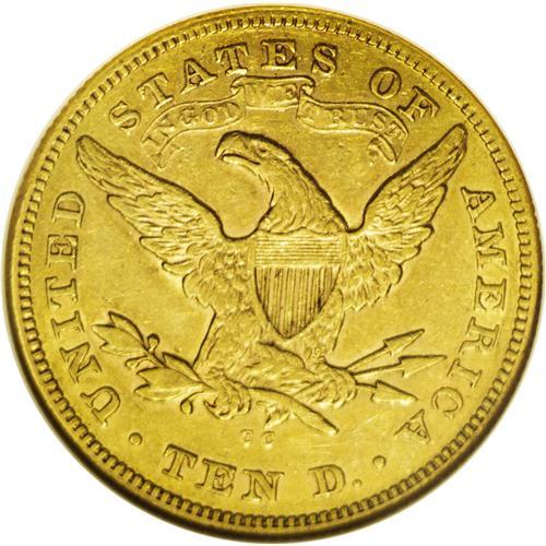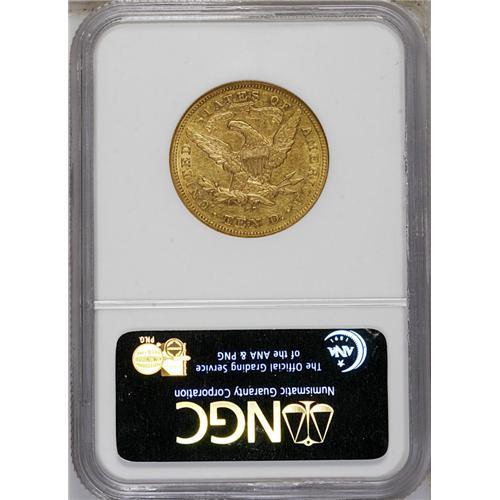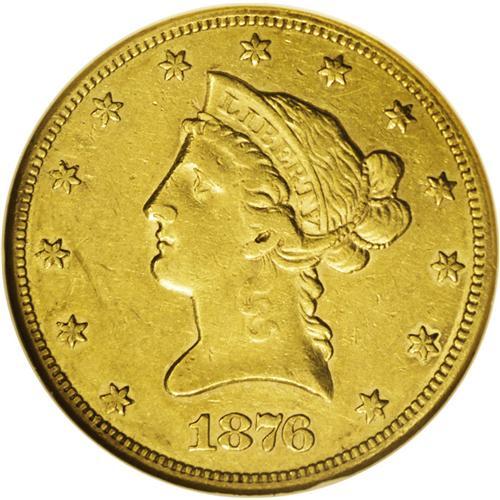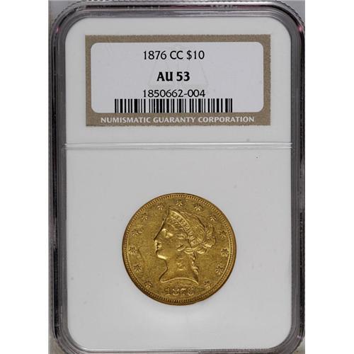1876-CC $10 AU53 NGC. Winter 1-A, the only known dies.