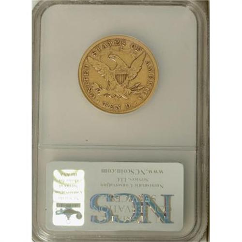 <B>1876-CC $10 --Improperly Cleaned--NCS. VG Details.</B></I> This survivor, though heavily circulated, shows better definition than the VG details grade might suggest. The bright yellow-gold surfaces show scattered abrasions, including a line of reeding marks between stars 3 and 4.<BR><BR><B>Coin Engraver:</B> Christian Gobrecht<BR><BR><b>Shipping:</b> Coins & Currency (<a target="_blank" href="http://www.heritageauctions.com/common/shipping.php">view shipping information</a>)