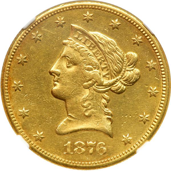 1876-CC. NGC AU Details, improperly cleaned. We note some burnishing. Well struck and lightly toned. Only 4,696 struck. Of the perhaps 100 examples believed to have survived, the usually found grade is VF, and even such pieces are rarely seen. "A definite sleeper," wrote John J. Ford, Jr., in his description of a VF example (also with obverse scratch) in the Cicero Collection sold by New Netherlands in 1960. Today, many years later, collectors are still searching examples in any grade.