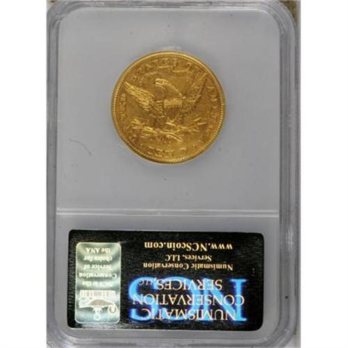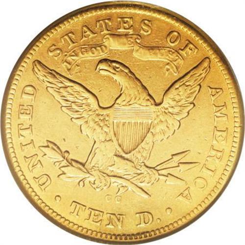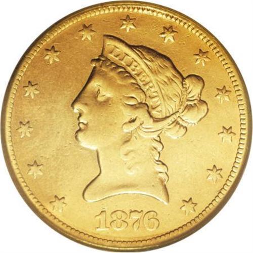<B>1876-CC $10 --Repaired, Improperly Cleaned--NCS. XF Details.</B></I> This Carson City issue from the centennial year has an official mintage of just 4,696 pieces, and certified populations project a survival rate as low as 3%. This lightly worn piece displays luminous orange-gold surfaces that show significant hairlines from a past cleaning. Softly struck with an area of conspicuous smoothing at Liberty's forehead.<BR><BR><B>Coin Engraver:</B> Christian Gobrecht<BR><BR><b>Shipping:</b> Coins & Currency (<a target="_blank" href="http://www.heritageauctions.com/common/shipping.php">view shipping information</a>)