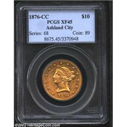 1876-CC $10 XF45 PCGS. Winter 1-A, the only known dies. Just shy of a Condition Census rating, this.