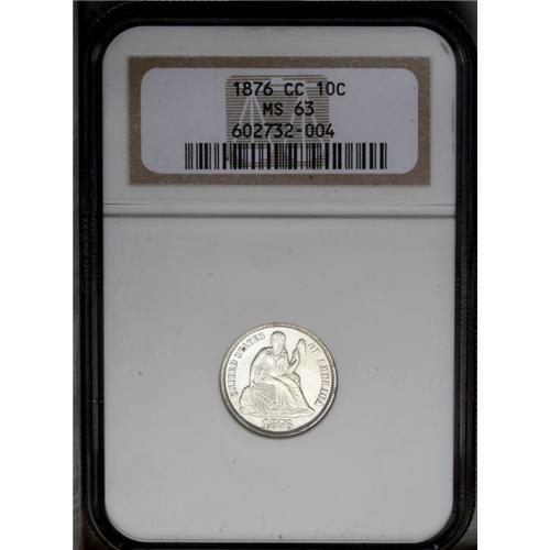 1876-CC 10C MS63 NGC. Type One Reverse. A brilliant an 1876-CC[10C] MS63 NGC.