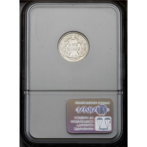 <B>1876-CC<10C> MS63 NGC.</B></I> Type One Reverse. A brilliant and mildly prooflike piece with unusually clean surfaces for the grade. A crisp strike, although the bow shows some incompleteness. Unlike most '76-CC dimes, there is no evidence of die doubling on the reverse legends.