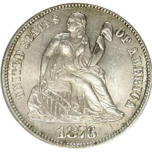 <B>1876-CC 10C MS63 PCGS.</B></I> PCGS Population (60/98). NGC Census: (44/147). Mintage: 8,270,000. Numismedia Wsl. Price for NGC/PCGS coin in MS63: $358. (#4680)<BR><BR><B>Coin Engraver:</B> Christian Gobrecht<BR><BR><b>Shipping:</b> Coins & Currency (<a target="_blank" href="http://www.heritageauctions.com/common/shipping.php">view shipping information</a>)