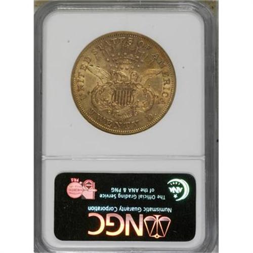 <B>1876-CC $20 AU50 NGC.</B></I> A pleasing example of this Centennial-year double eagle. The orange-gold surfaces show a bit of smoky patina on the high points, and while the luster is fairly muted, there are few abrasions of any size noted.<BR><BR><B>Coin Engraver:</B> James B. Longacre<BR><BR><b>Shipping:</b> Coins & Currency (<a target="_blank" href="http://www.heritageauctions.com/common/shipping.php">view shipping information</a>)