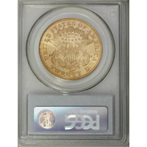 <B>1876-CC $20 AU55 PCGS.</B></I> The lower obverse field has a chatter mark that prevents a higher grade, but the bright yellow luster and frosty surfaces counter the blemish. The highpoints have a trace of wear. As the highest mintage Carson City double eagle, this date is a popular choice for type collectors.<BR><BR><B>Coin Engraver:</B> James B. Longacre<BR><BR><b>Shipping:</b> Coins & Currency (<a target="_blank" href="http://www.heritageauctions.com/common/shipping.php">view shipping information</a>)