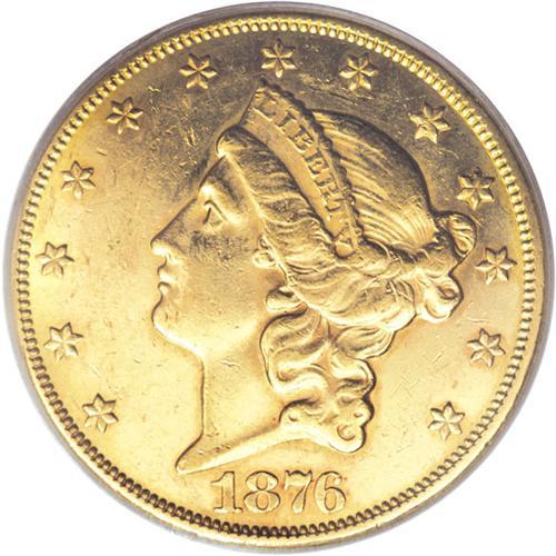 <B>1876-CC $20 AU58 PCGS.</B></I> Variety 1-A. In the case of the 1876-CC, the high mintage of 138,441 pieces equates to a high number of survivors, possibly as many as 3,000 in all grades. While this AU58 is outside the Condition Census, it represents good value for a Type Two twenty from the Carson City mint. The reddish tinged surfaces show a bright semi-prooflike finish in the fields, and the devices are sharply struck, as usual. Lightly abraded overall with no obvious or singularly detracting marks.<BR><BR><b>Shipping:</b> Coins & Currency (<a target="_blank" href="http://www.heritageauctions.com/common/shipping.php">view shipping information</a>)
