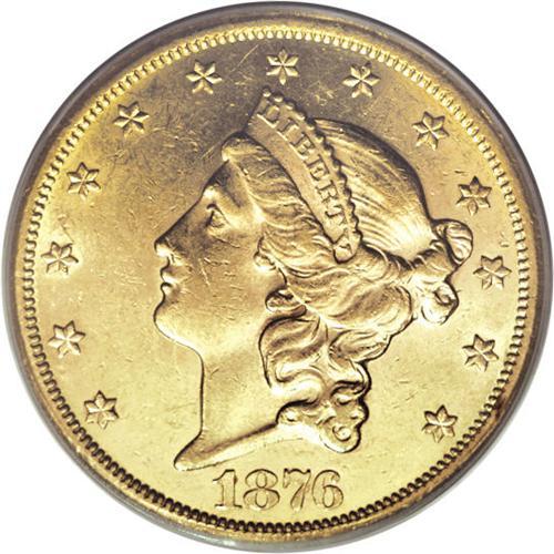 <B>1876-CC $20 AU58 PCGS.</B></I> While the 1876-CC has the highest mintage of any Carson City double eagle, it is not the most common in higher grades. This bright yellow-gold representative have flashy surfaces and potent cartwheel luster, and while the cheek has a single abrasion and light marks pepper the fields, this coin's visual appeal remains strong. A small copper spot is noted in the rays above the eagle. Solidly struck with just a touch of friction near the face.<BR><BR><b>Shipping:</b> Coins & Currency (<a target="_blank" href="http://www.heritageauctions.com/common/shipping.php">view shipping information</a>)