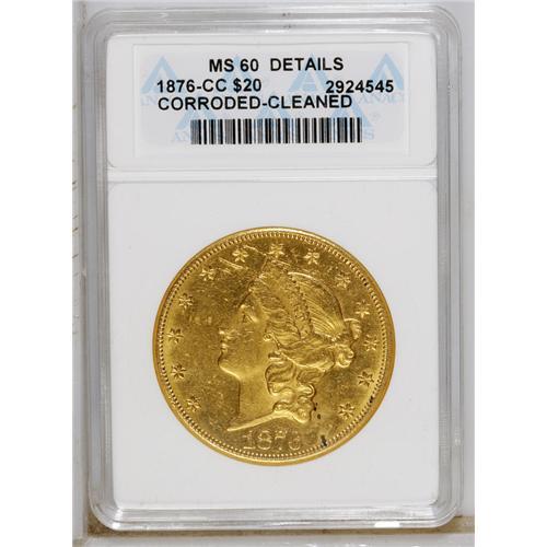 1876-CC $20 --Corroded, Cleaned--ANACS. MS60 Details. F