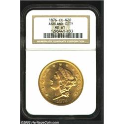 1876-CC $20 MS61 NGC. Winter 1-A. In addition to the mintmark placement, this coin is attributable b