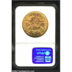 1876-CC $20 MS61 NGC. Winter 1-A. In addition to the mintmark placement, this coin is attributable by the numerous spindly die cracks (as produced) through the letters in the reverse legend and denomination. Perhaps surprisingly for an issue that boasts the highest mintage (138,441 pieces) among CC-mint Double Eagles, the 1876-CC was very difficult to locate in high grades until the discovery of a hoard in 1993-1994. Today, there are perhaps 100-125 coins extant in Mint State (per Winter and Halperin, 2001). We do not know whether or not the present example traces its pedigree to the aforementioned hoard, but there can be little doubt that it is among the most visually appealing '76-CC Twenties at the BU level. The strike, while not complete, is well above average for the type, and the richly frosted surfaces swirls with lovely cartwheel effects. An orange-gold representative with no abrasions that are out of context with the designated grade. Worthy of inclusion in a high grade type or date set.From the Ashland City Collection. Important notice: We expect to be auctioning lots at the rate of 200-250 per hour. Sometimes eBay Premier live bid software cannot keep up with that pace, so we strongly recommend that you place a realistic proxy bid now as insurance to avoid disappointment. Also please note that all Heritage/CAA lots purchased through eBay Premier carry a 20% Buyer's Premium. Please make sure you read the Terms and Conditions.