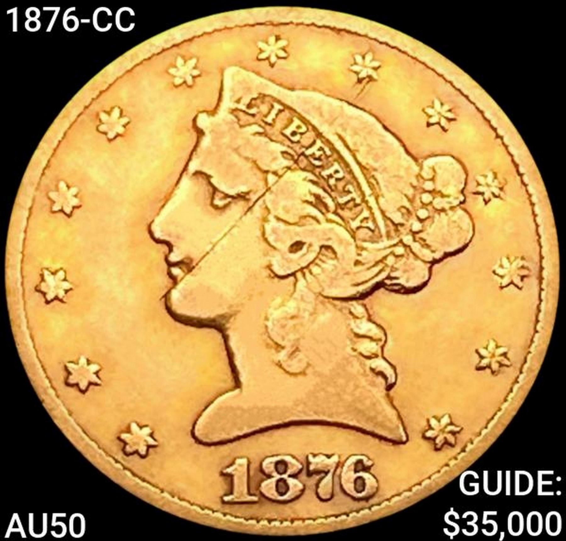 1876-CC $5 Gold Half Eagle CLOSELY UNCIRCULATED