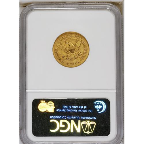 <B>1876-CC $5 VG8 NGC.</B></I> Variety 1-A. The surfaces are orange-gold with slight darkening near the devices. Given the amount of wear on this piece, the handling marks in the fields are few. Only 6,887 pieces were struck, which makes this the lowest-mintage Carson City half eagle.<BR><BR><b>Shipping:</b> Coins & Currency (<a target="_blank" href="http://www.heritageauctions.com/common/shipping.php">view shipping information</a>)