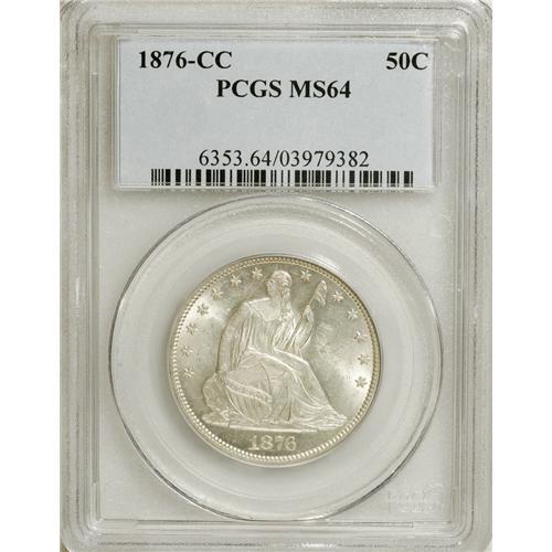 <B>1876-CC 50C MS64 PCGS.</B></I> Type One Reverse. A lustrous and lightly toned Carson City type coin that boasts an exacting strike and attractive preservation. Population: 12 in 64, 12 finer (2/07).<BR><BR><b>Shipping:</b> Coins & Currency (<a target="_blank" href="http://www.heritageauctions.com/common/shipping.php">view shipping information</a>)