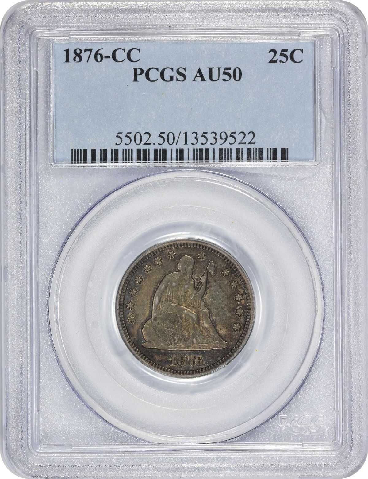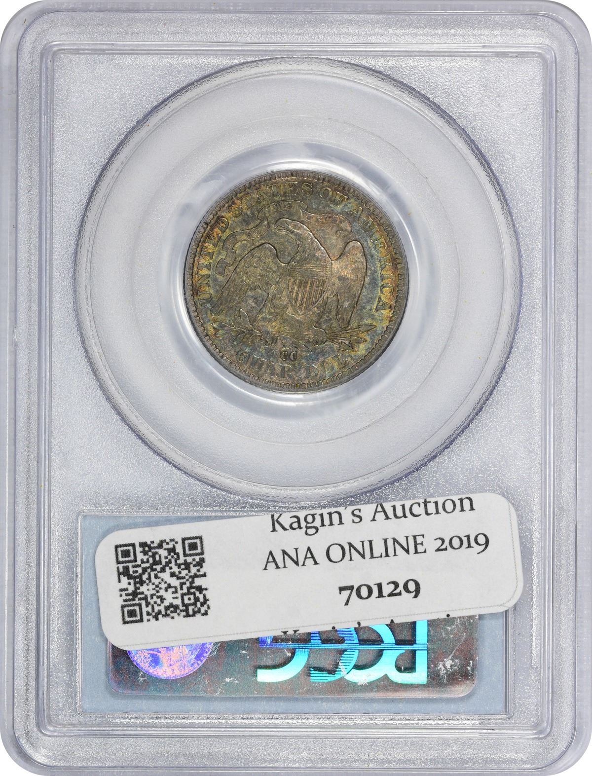 Deep golden-gray with lively blue and rose toning throughout. PCGS #5502