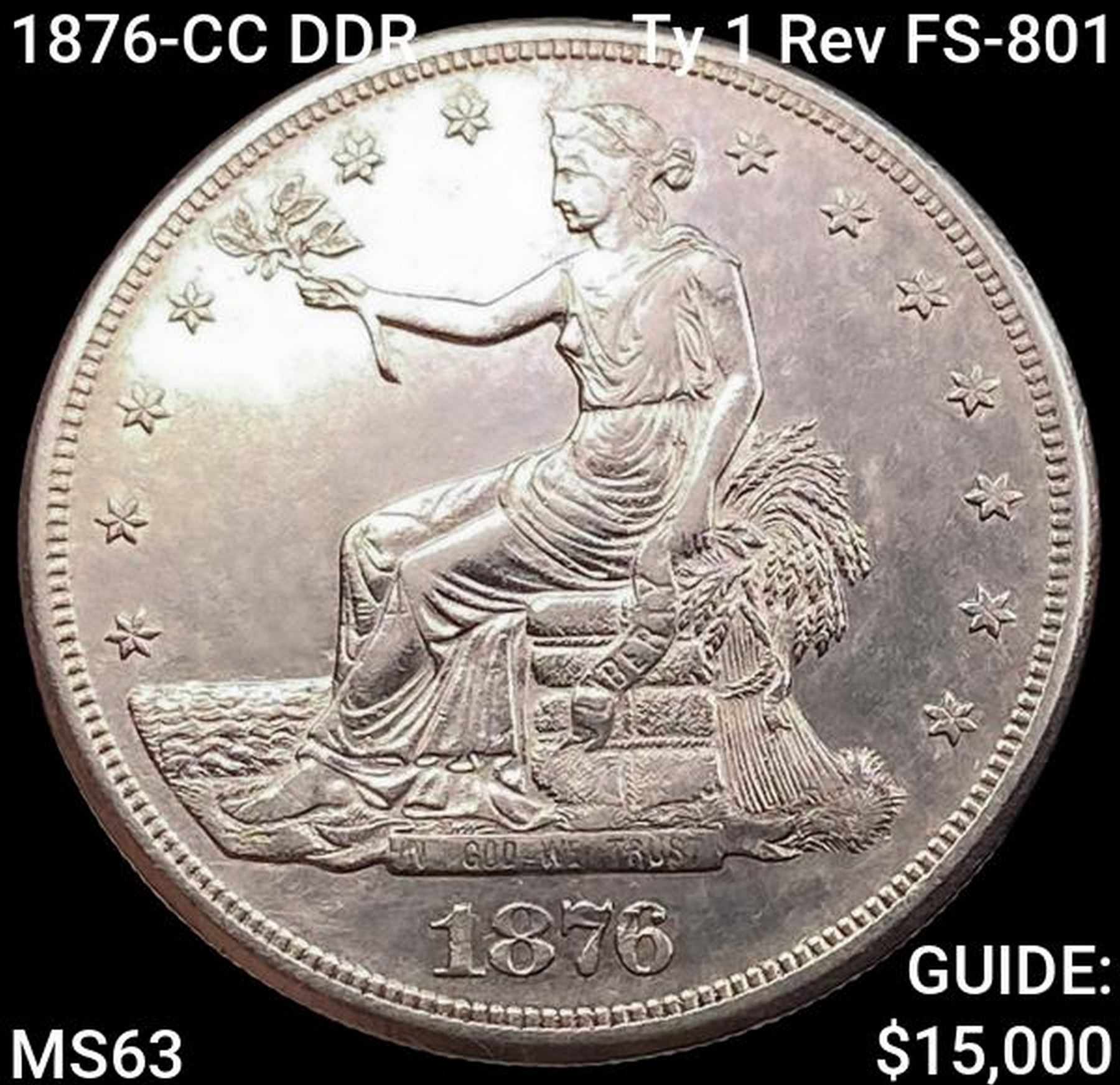 1876-CC DDR Ty 1 Rev FS-801 Silver Trade Dollar CHOICE BU
