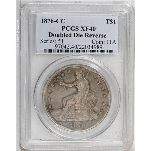 1876-CC S$1 Doubled Die Reverse XF40 PCGS. FS-801, Bre