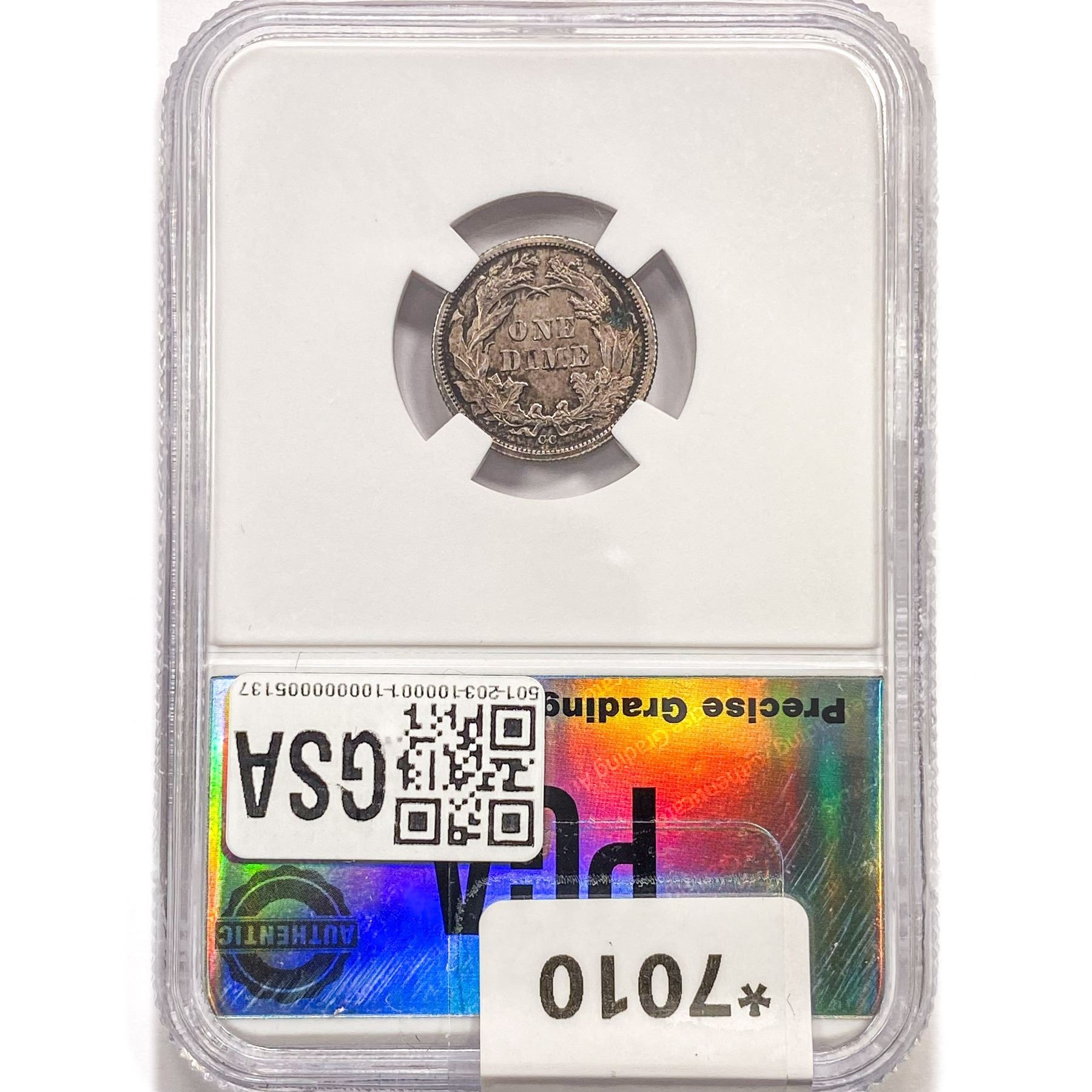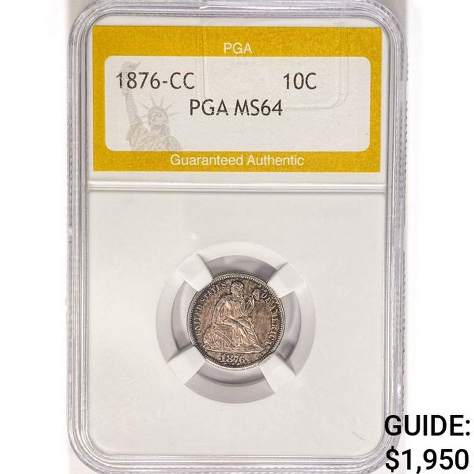 1876-CC Seated Liberty Dime PGA MS64
