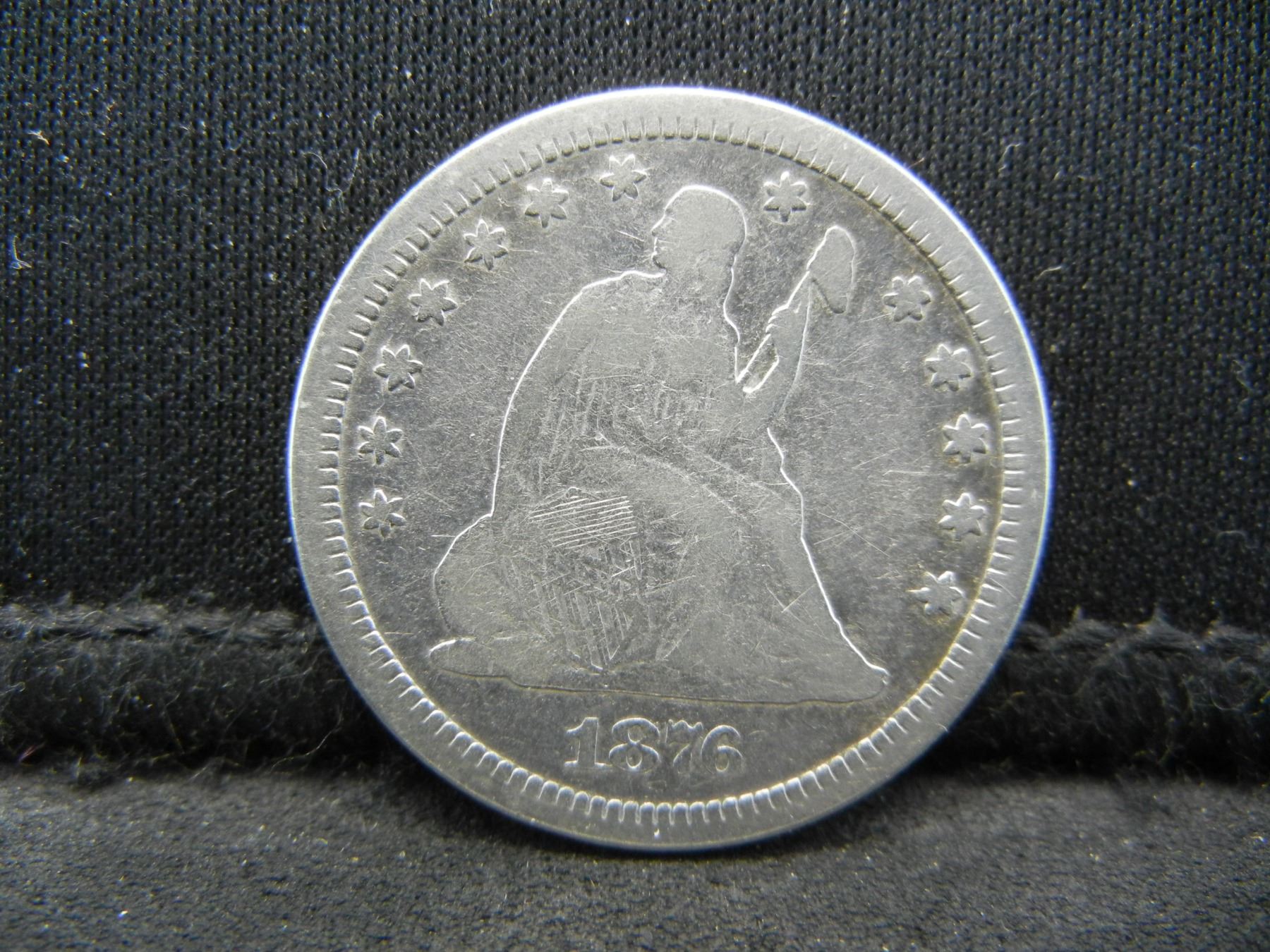 1876 CC Seated Quarter VF Semi Key Date