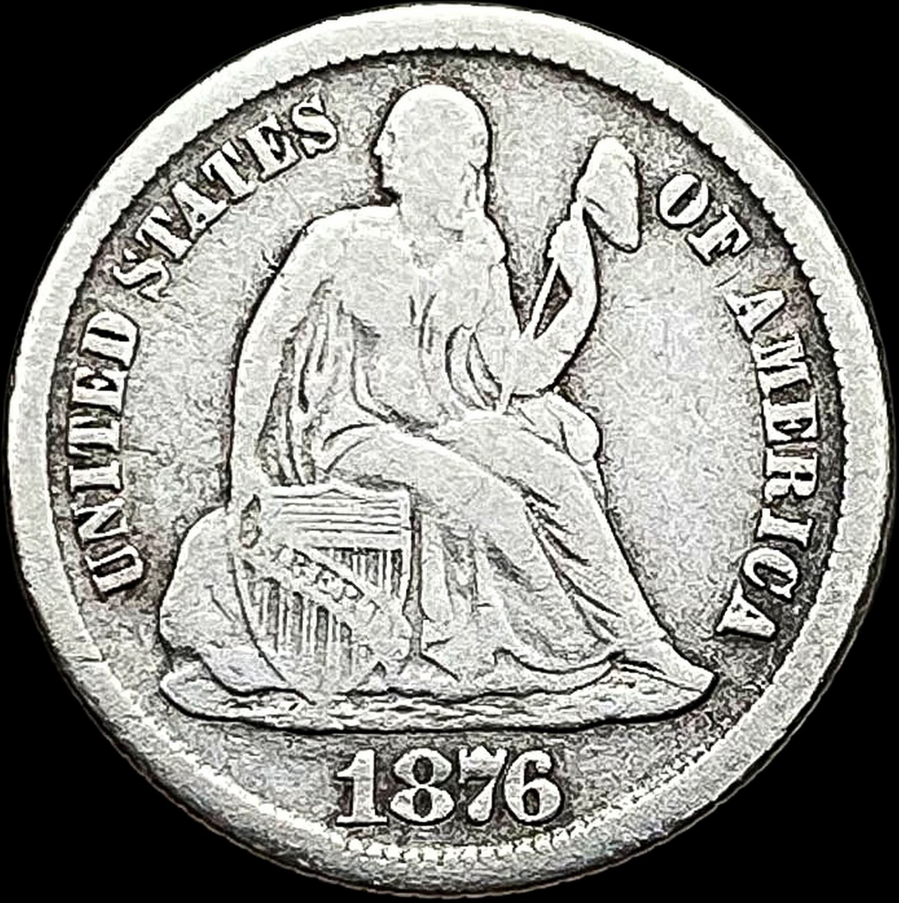 1876-CC Silver Seated Liberty Dime LIGHTLY CIRCULATED
