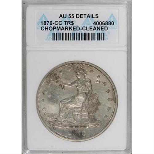 <B>1876-CC T$1 Chop Mark--Cleaned--ANACS. AU55 Details.</B></I> NGC Census: (0/0). PCGS Population (2/3). (#87042)<BR><BR><b>Shipping:</b> Coins & Currency (<a target="_blank" href="http://www.heritageauctions.com/common/shipping.php">view shipping information</a>)
