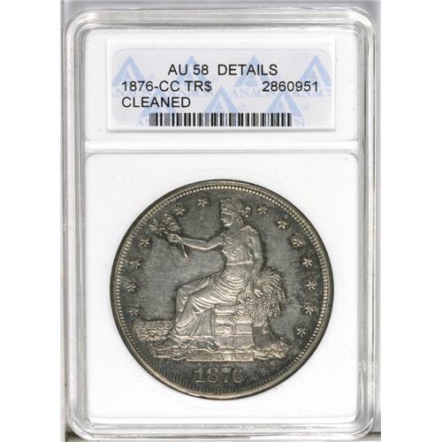 1876-CC T$1 --Cleaned--ANACS. AU58 Details. Type One Ob 1876-CC