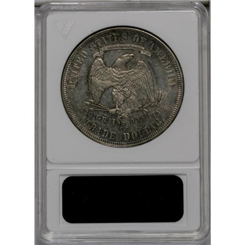 <B>1876-CC<T$1>--Cleaned--ANACS. AU58 Details.</B></I> Type One Obverse, Type Two Reverse. Hairlines emerge when this piece is rotated beneath a loupe. This well struck and partly lustrous CC-mint example has retoned in rich plum-gray and tan shades.