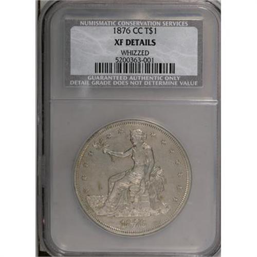 <B>1876-CC T$1 --Whizzed--NCS. XF Details.</B></I> NGC Census: (1/91). PCGS Population (7/82). Mintage: 509,000. Numismedia Wsl. Price for NGC/PCGS coin in XF40: $400. (#7042)<BR><BR><B>Coin Engraver:</B> William Barber<BR><BR><b>Shipping:</b> Coins & Currency (<a target="_blank" href="http://www.heritageauctions.com/common/shipping.php">view shipping information</a>)