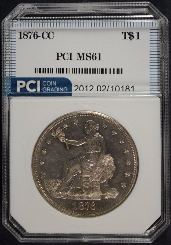 1876-CC TRADE DOLLAR, PCI GRADED BU, VERY RARE!!