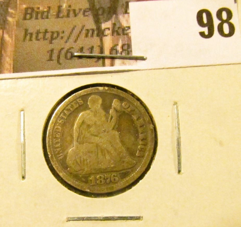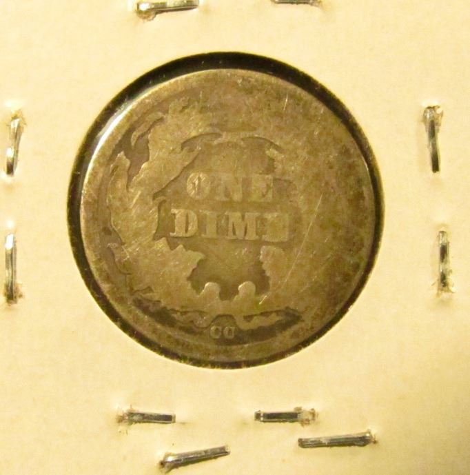 1876 CC U.S. Seated Liberty Dime, VG-AG, Mintmark below bow.