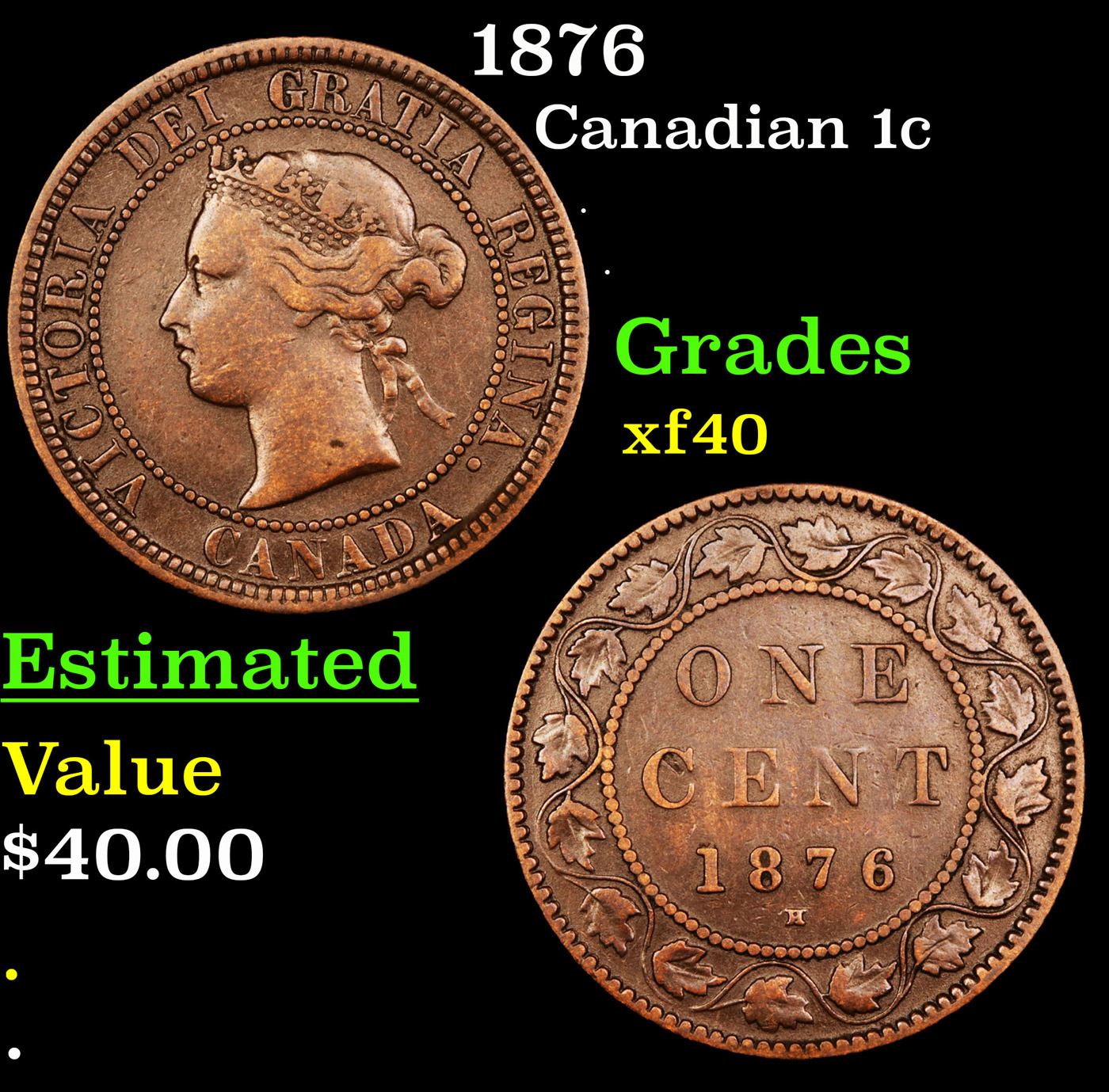 1876 Canadian Penny 1c grades XF