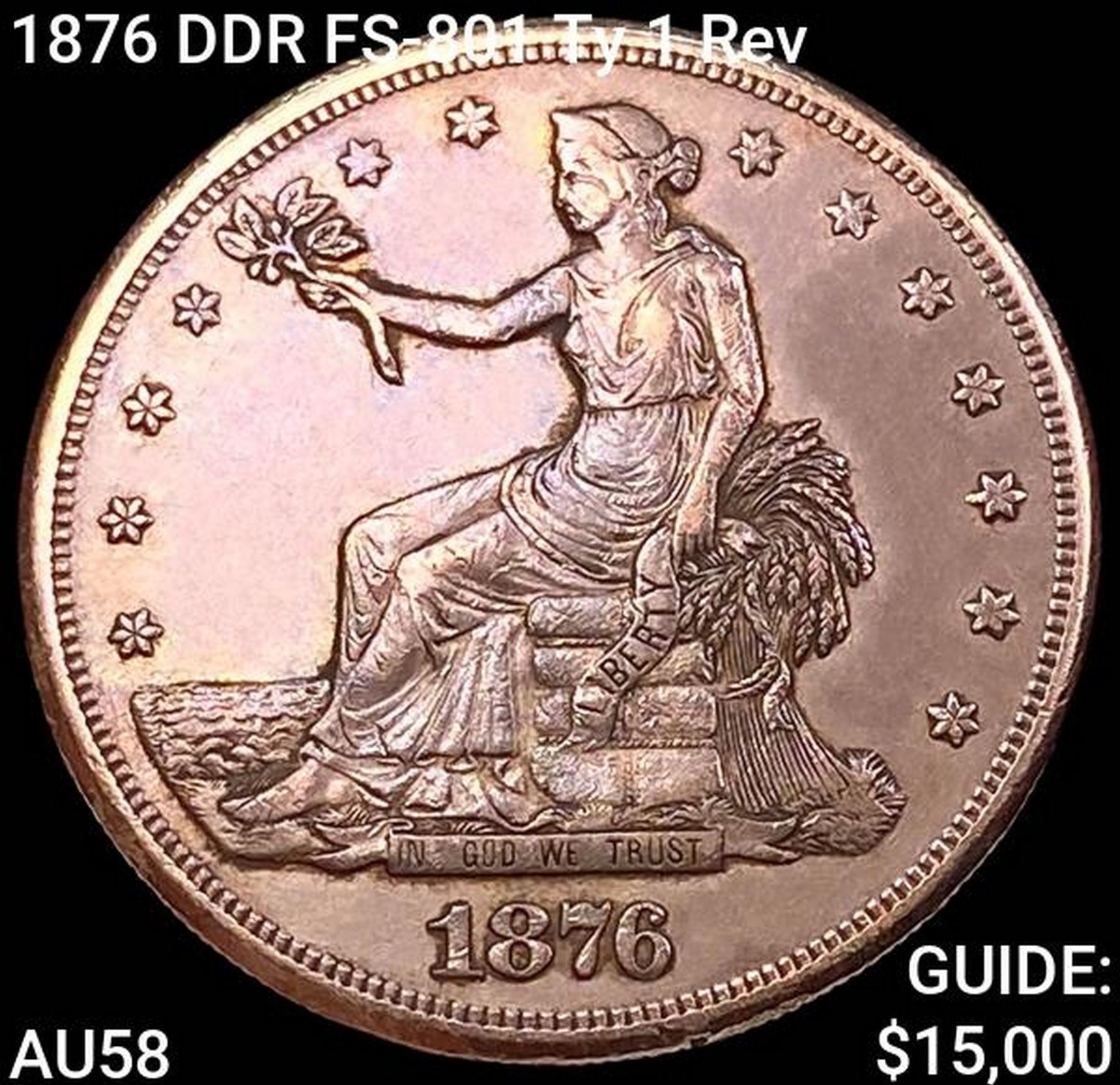 1876 DDR FS-801 Ty 1 Rev Silver Trade Dollar CHOICE AU