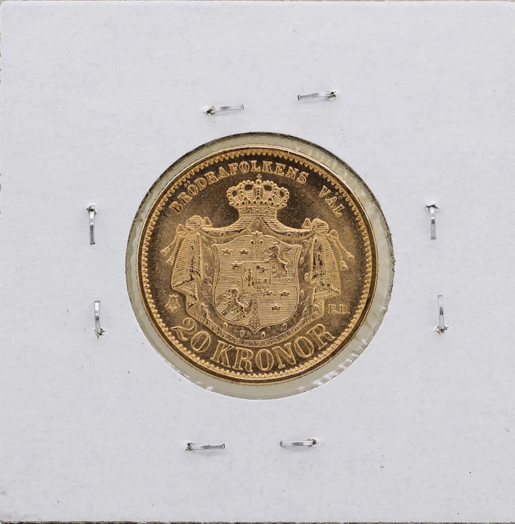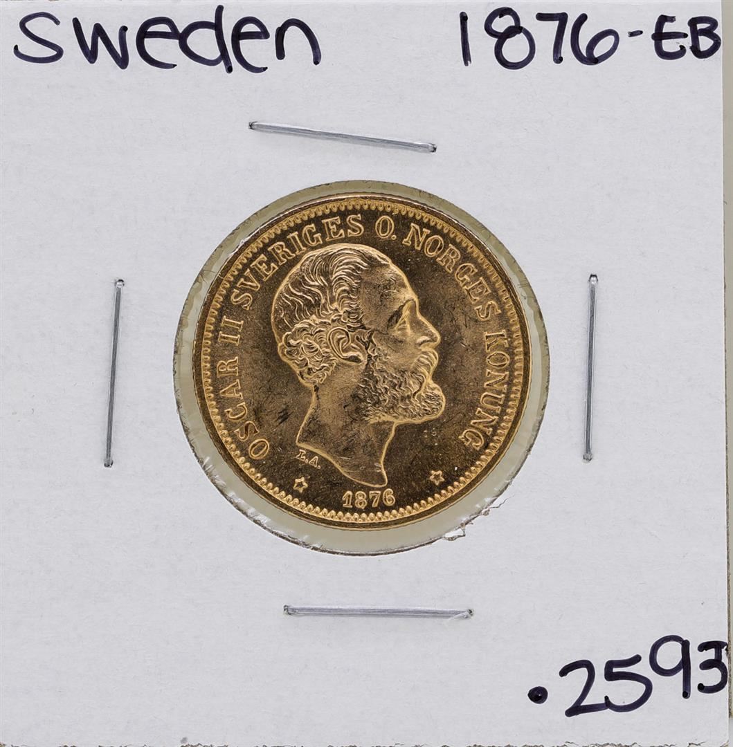 One 1876-EB Sweden 2 Kroner Gold Coin.
