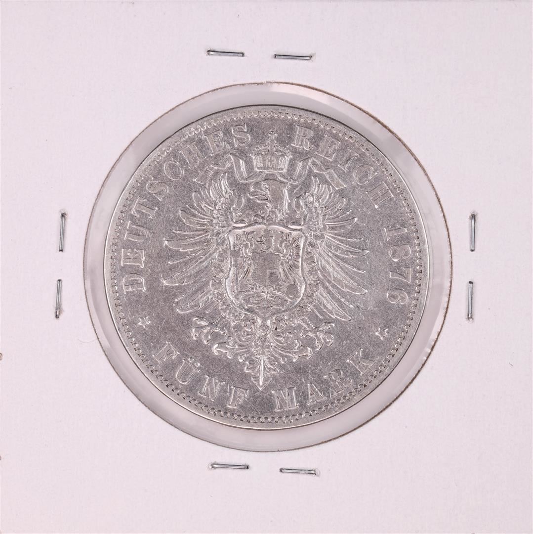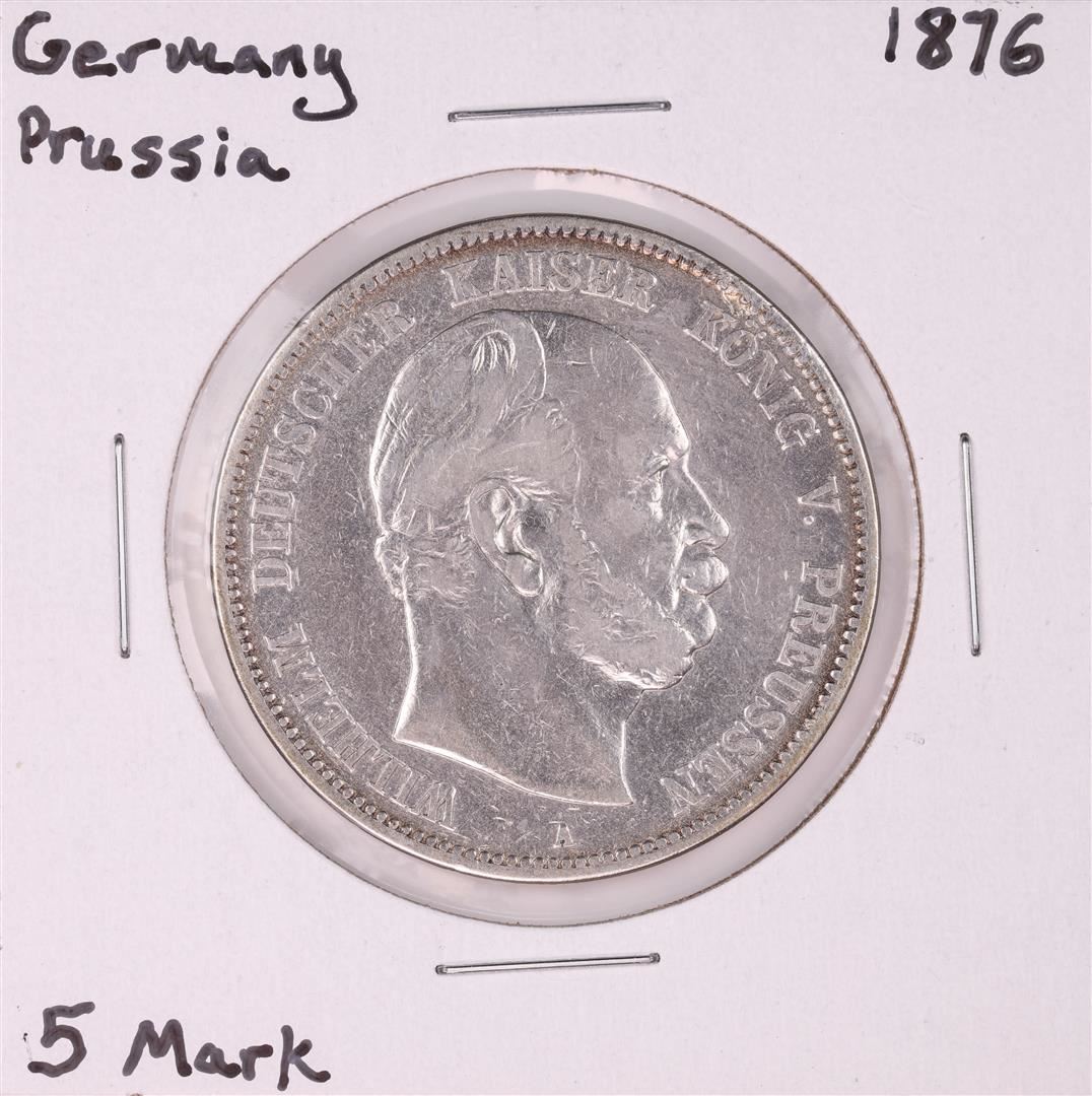 One 1876 Germany Prussia 5 Mark Silver Coin.