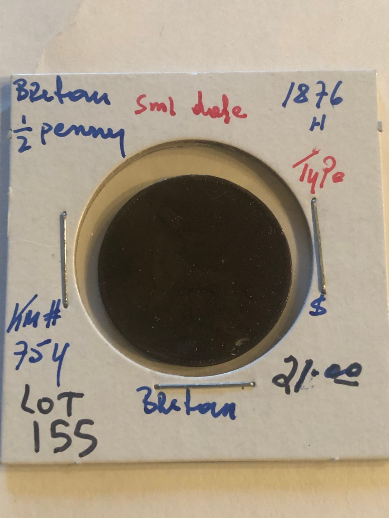 1876 H Great Britain Half Penny Small Date Type KM 754