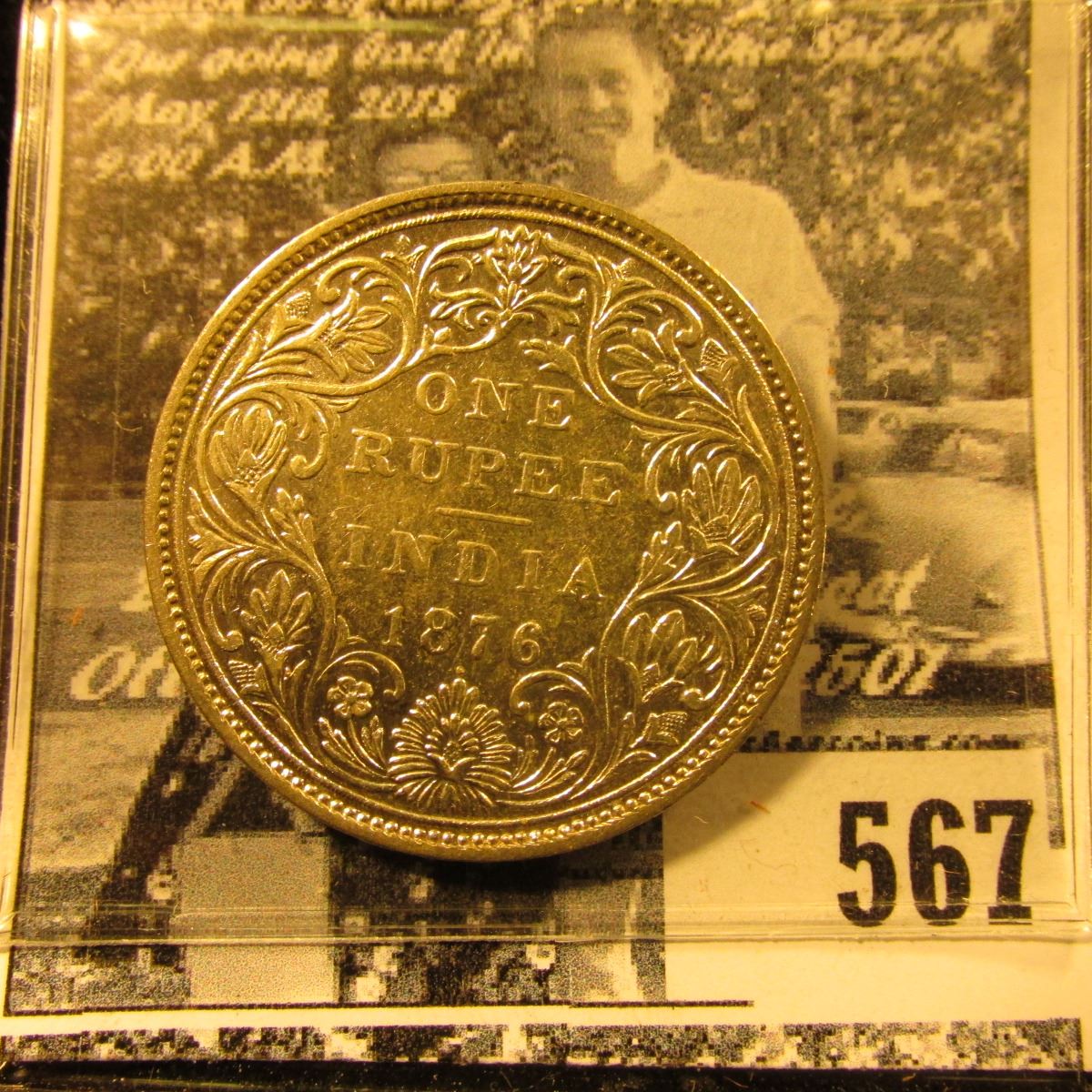 1876 India Silver One Rupee, Victoria Queen, EF-AU.