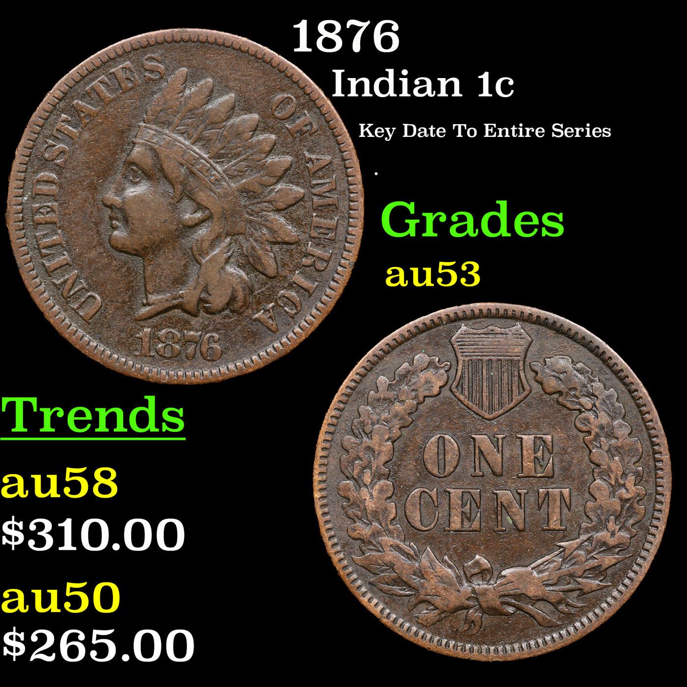 1876 Indian Cent 1c Grades Select AU. very scarce date. PCGS estimates that only 5000 survive in all grades