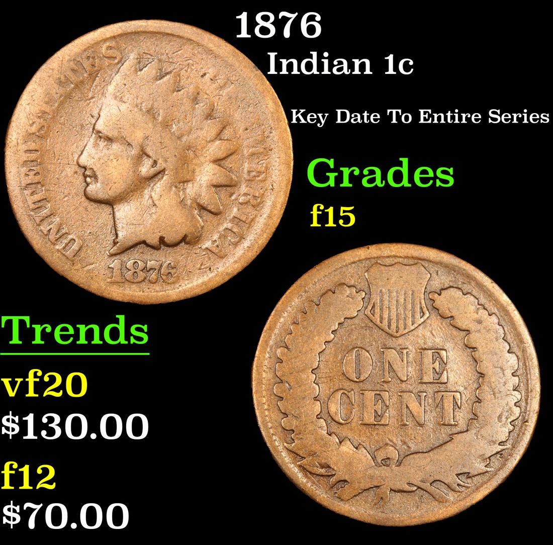 1876 Key Date To Entire Series . Indian Cent 1c Grades f+. very scarce date. PCGS estimates that only 5000 survive in all grades A Corey's Pick