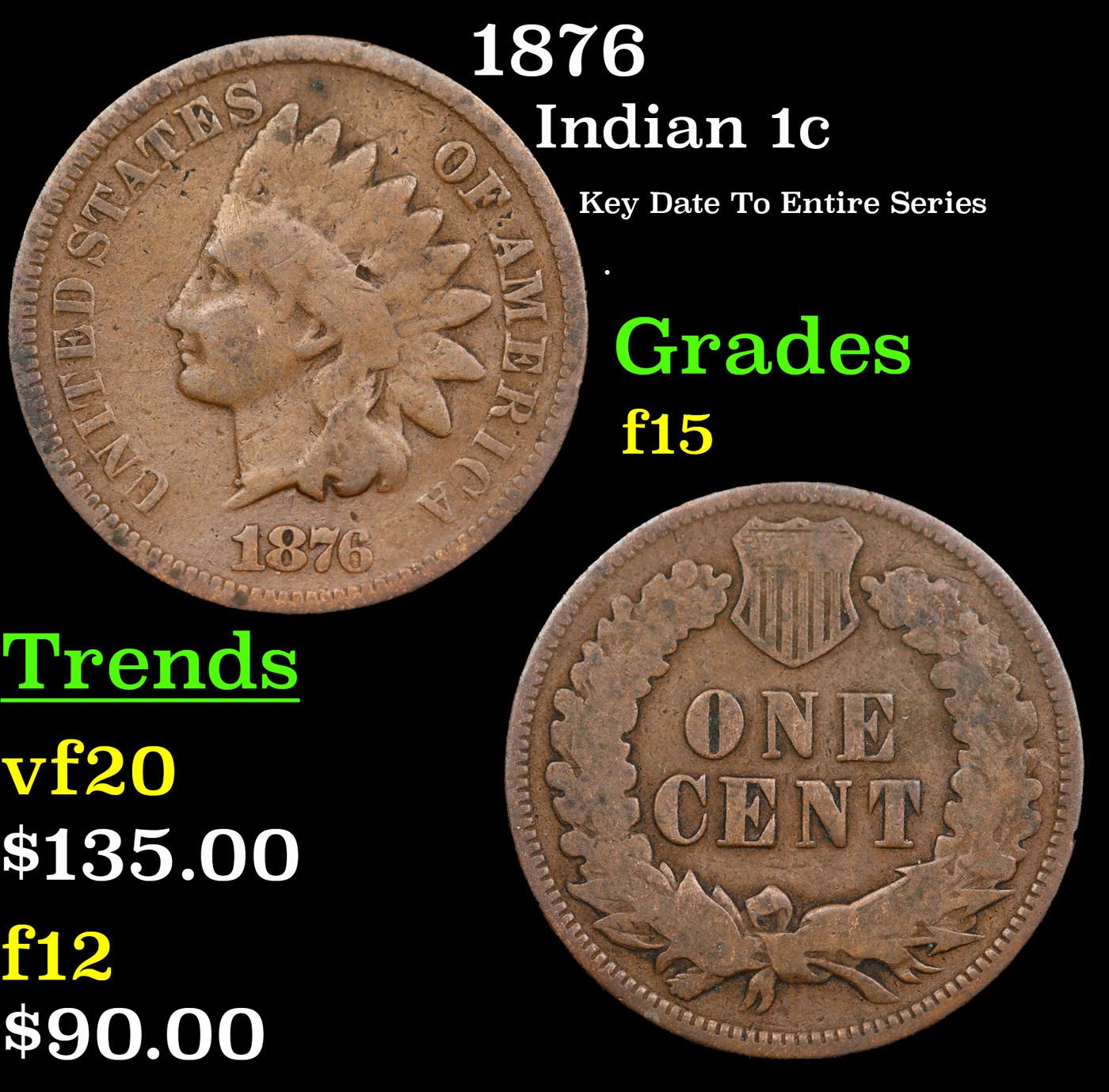 1876 Indian Cent 1c Grades f+. very scarce date. PCGS estimates that only 5000 survive in all grades