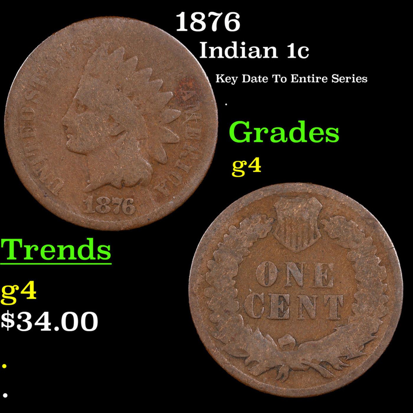 1876 Indian Cent 1c Grades g, good. very scarce date. PCGS estimates that only 5000 survive in all grades