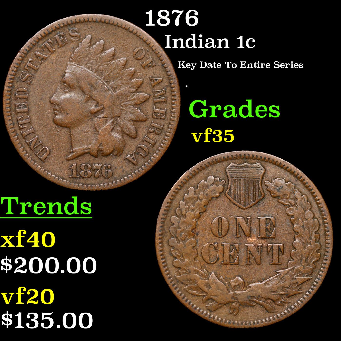 1876 Indian Cent 1c Grades vf++. very scarce date. PCGS estimates that only 5000 survive in all grades