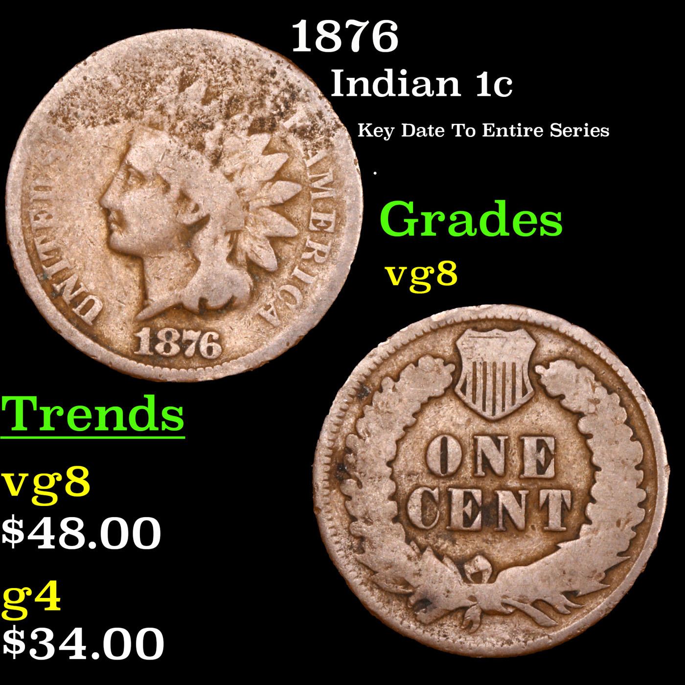 1876 Indian Cent 1c Grades vg, very good. very scarce date. PCGS estimates that only 5000 survive in all grades