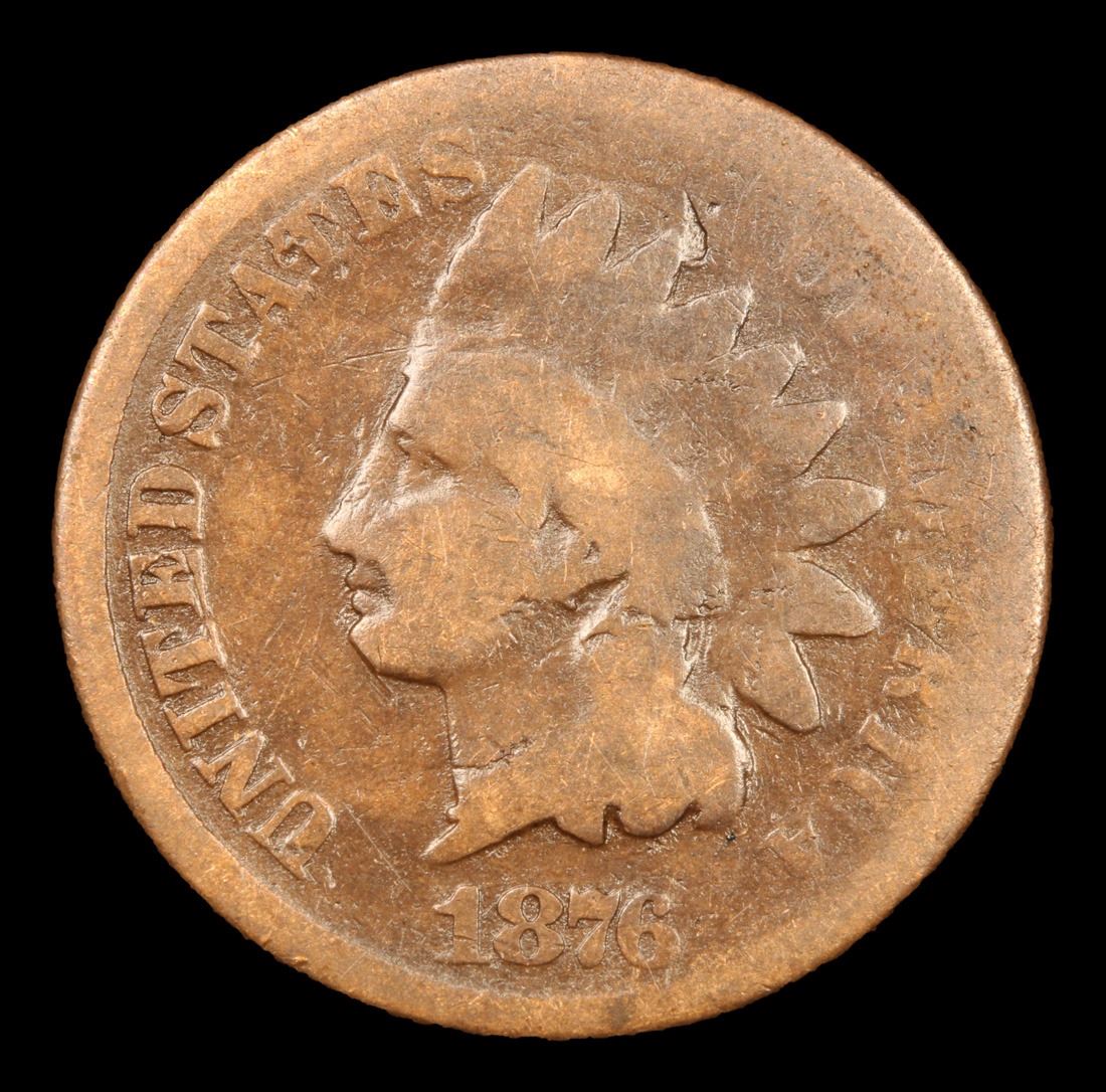 1876 Key Date To Entire Series . Indian Cent 1c Grades vg+. very scarce date. PCGS estimates that only 5000 survive in all grades