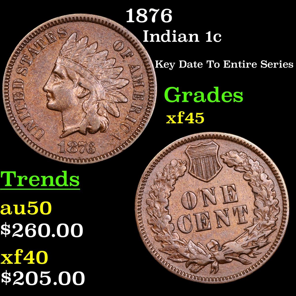 1876 Key Date To Entire Series . Indian Cent 1c Grades xf+. very scarce date. PCGS estimates that only 5000 survive in all grades